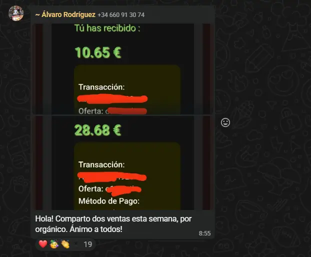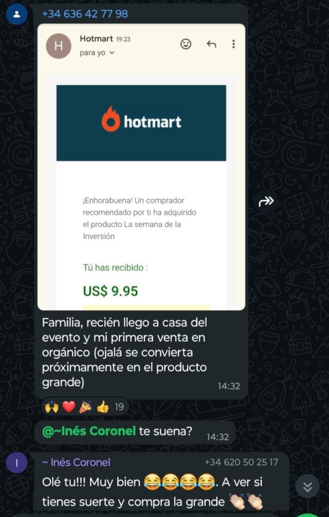Ahí mismo se hablan de diferentes temas y se comparten resultados de ventas constantemente. Podría poner capturas viejas de resultados de alumnos. Pero para que veas que esto es algo que les da resultados a los alumnos actualmente, te dejo capturas de resultados de ventas que comparten por el grupo.